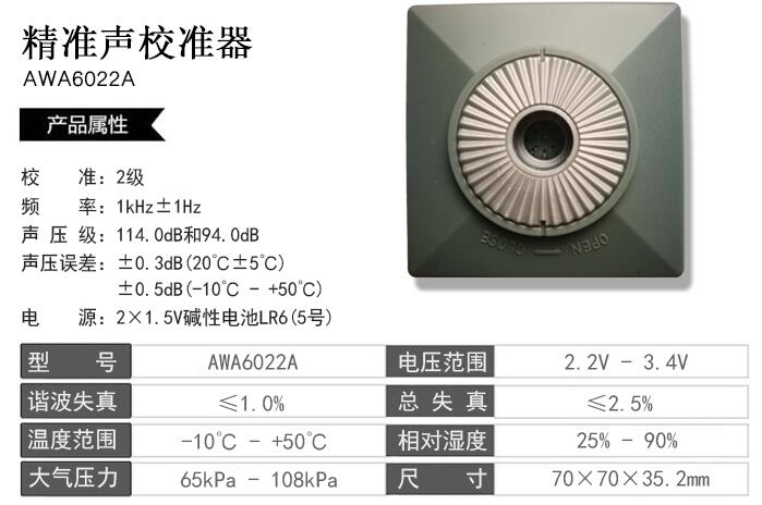 杭州愛華AWA6021A/AWA6022A聲學校準器的技術參數: