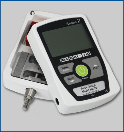 Series2經濟型M2-10數字測力計過載為儀器滿量程的150%,屏幕逆轉顯示,可手持式操作或安裝在測量臺架上測量,金屬機身設計可適應工廠檢測環境及實驗室環境.Series2系列測力計可配合所有MARK-10生產的測量臺架及夾具.