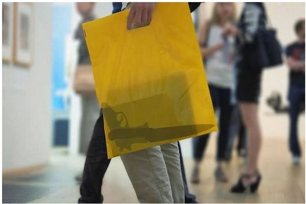 他們?cè)谌S色的購(gòu)物膠袋上,印上危險(xiǎn)物品的剪影,乍看一下,還以為袋子裡真的藏有了危險(xiǎn)物,這種購(gòu)物膠袋拿在手裡不但路人回頭率高,還可能會(huì)莫明奇妙的惹來(lái)警察的監(jiān)視。