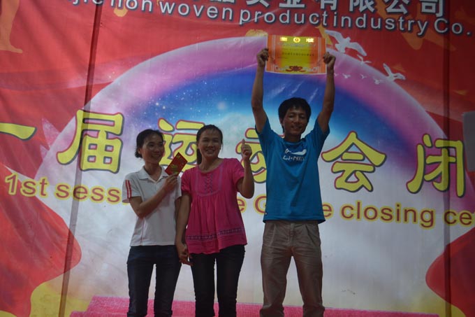 經過一個多月的激烈比賽,于2012年6月20日森榮森杰無紡布袋第一屆運動會圓滿結束了。在此次運動會中人事部的直接指導下,全體員工積極參與、合作,順利地完成了秩序維護,監督,裁判等各項工作。