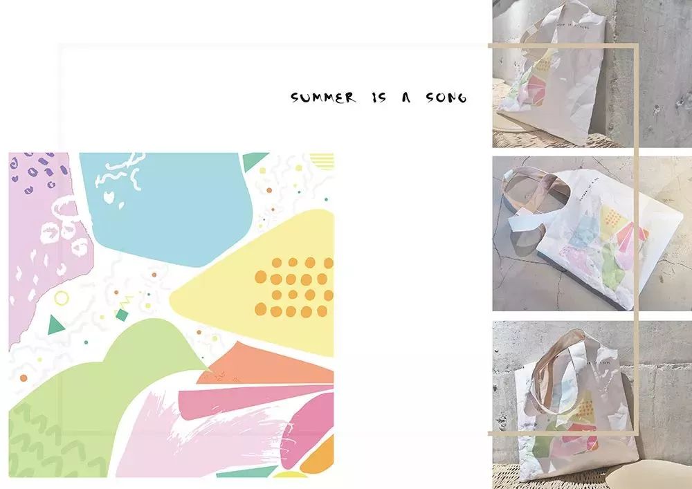 Gradual Summer以Tyvek? 1082D 為主要材質(zhì),印上一系列色彩絢麗的圖案,成為一系列夏天主題的包袋,每個(gè)包袋都是一個(gè)夏日的故事。