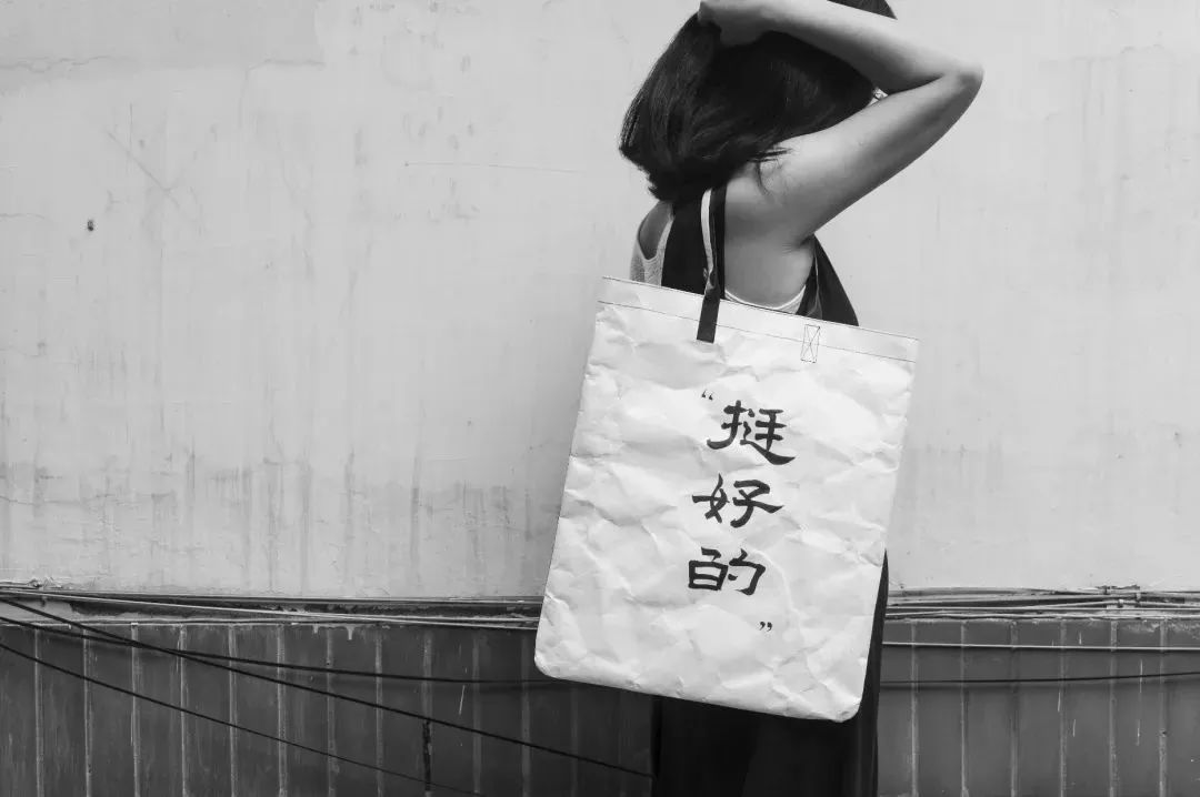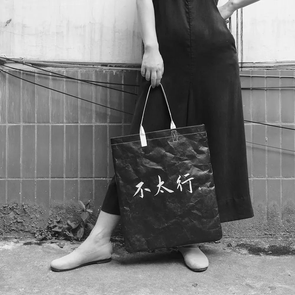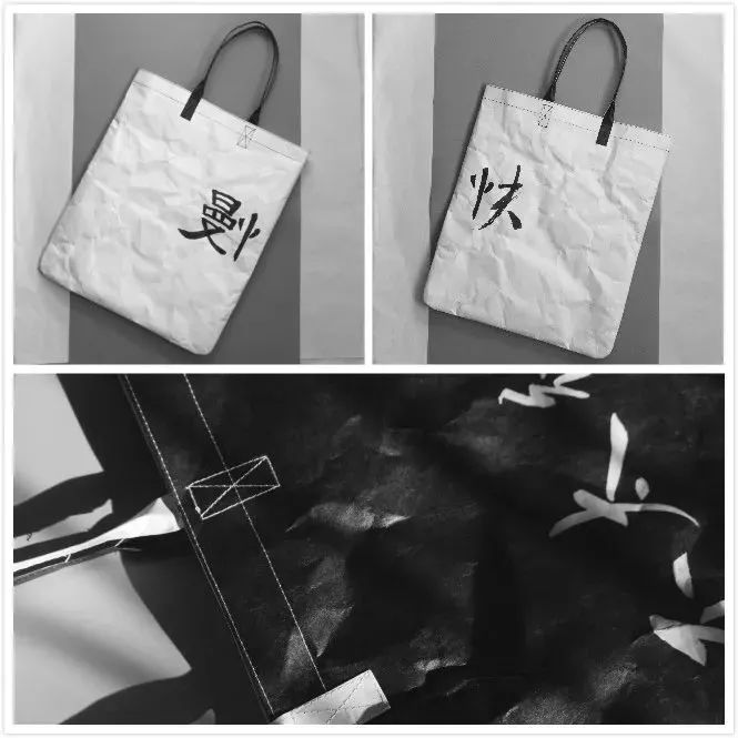 Tyvek? 特殊的紙感讓設(shè)計(jì)師聯(lián)想到了文字。為了充分體現(xiàn)漢字的魅力,并呼應(yīng)Tyvek? 的紙質(zhì)特性,所有文字和圖樣均由設(shè)計(jì)師手寫并掃描而成,保留了書法墨跡在宣紙上的獨(dú)特效果。整個(gè)系列的文字內(nèi)容選擇了三組反義詞和三組潛臺(tái)詞,兼具嚴(yán)肅與詼諧,為不同人群需求提供豐富的選擇。