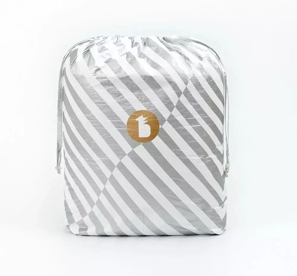 Tyvek? 材料比紙張更輕盈,卻堅(jiān)韌有質(zhì)感,光滑不掉屑,用做床上用品的包裝,可以很好地阻隔外界灰塵,確保使用者的健康。菠蘿斑馬床上亞麻四件套包裝袋在Tyvek? 上印上金色Logo,再配上銀色條紋,彰顯大氣。